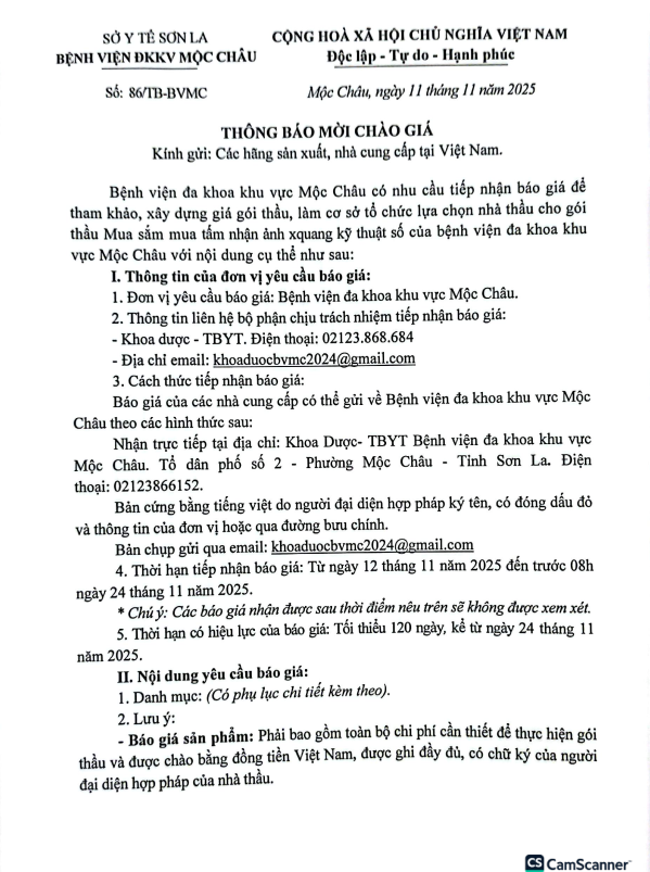 Thông Báo Mời Chào Giá