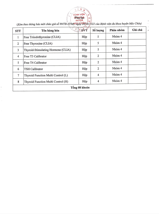 Thông Báo Mời Chào Giá