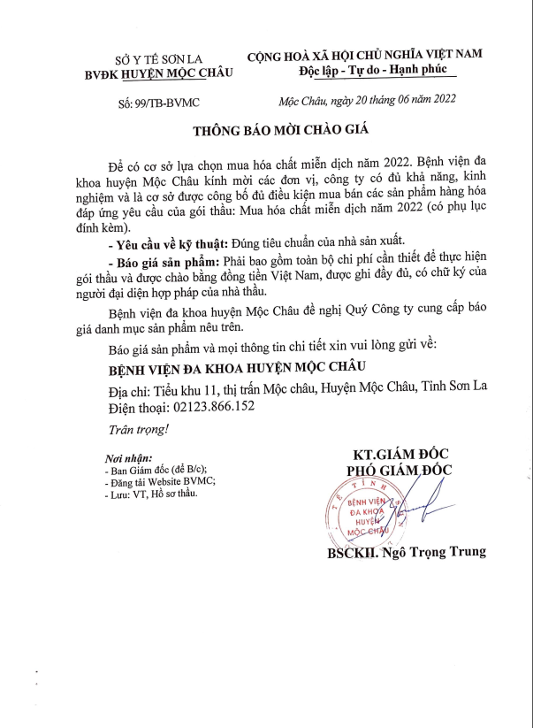 BỆNH VIỆN ĐA KHOA MỘC CHÂU