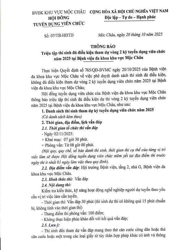 BỆNH VIỆN ĐA KHOA MỘC CHÂU