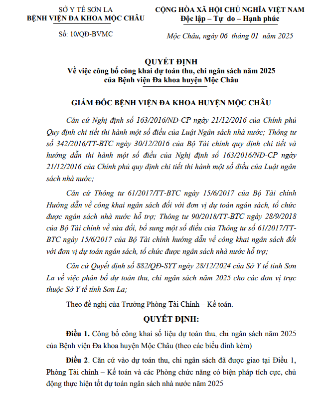 BỆNH VIỆN ĐA KHOA MỘC CHÂU