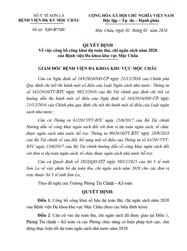 BỆNH VIỆN ĐA KHOA MỘC CHÂU